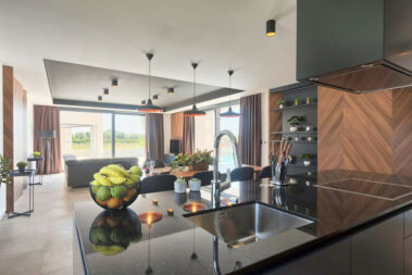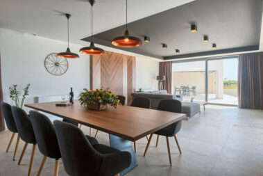 Im Erdgeschoss befinden sich zwei Schlafzimmer, die mit eigenem Bad und und einer Klimaanlage ausgestattet sind, und eine offene Wohnküche mit direktem Zugang zur Terrasse mit Pool. Im ersten Stock befinden sich zwei weitere Schlafzimmer mit je eigenem Badezimmer und Zugang zum großen Balkon mit Blick auf den Garten und den Pool. Die Inneneinrichtung der gesamten Villa wurde aufmerksam ausgewählt, um den Räumen Wärme zugeben. Sie suchen in Ihrem zukünftigen Immobilieninvestment moderne Architektur und feine Inneneinrichtung kombiniert mit ländlicher Idylle? Dann ist diese Villa die ideale Wahl!