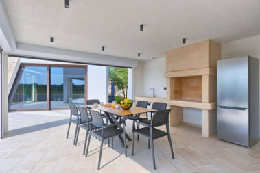 Diese moderne Villa ist nur wenige Kilometer vom Zentrum der Stadt Vodnjan entfernt und bietet durch ihre optimale Location Ruhe und Erholung. Die Villa wurde 2019 erbaut und die Wohnfläche beträgt insgesamt 220 m2. Sie verfügt über einen modernen Pool mit Heizung, was vorteilhaft bei der Ferienvermietung ist. Neben dem Außenpool befindet sich eine Sommerküche, die ideal für die Sommermonate ist. Die Ferienvilla besteht aus Erdgeschoss und einem weiteren Stockwerk.